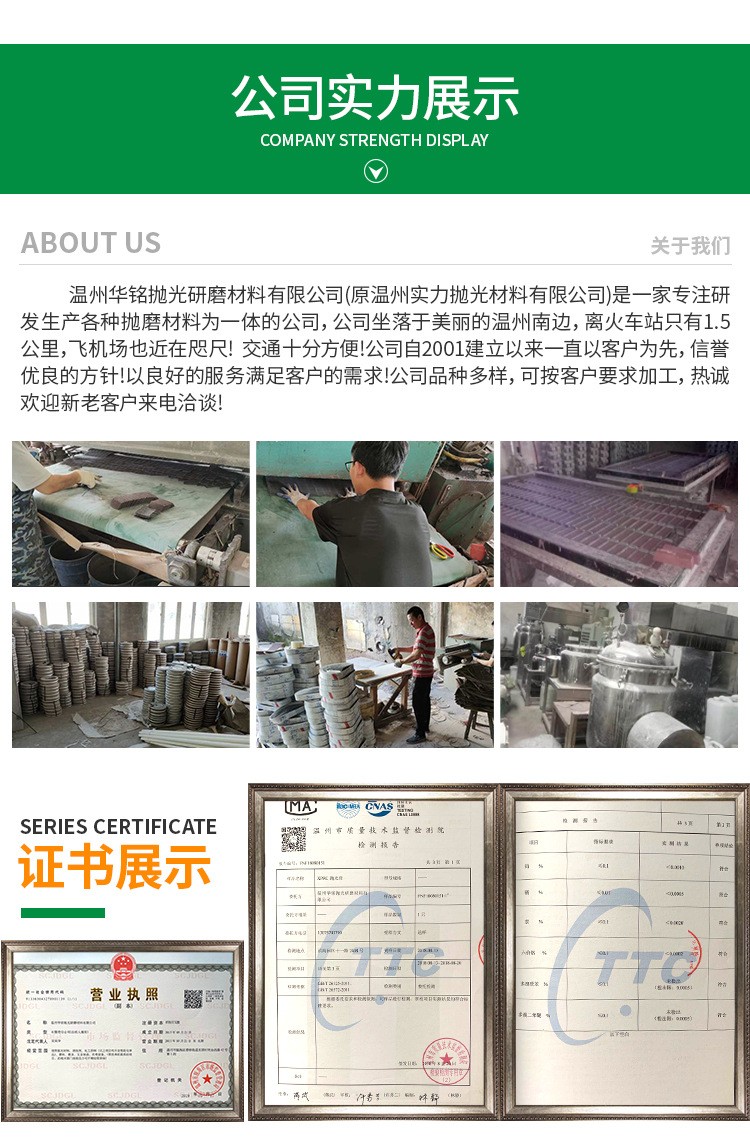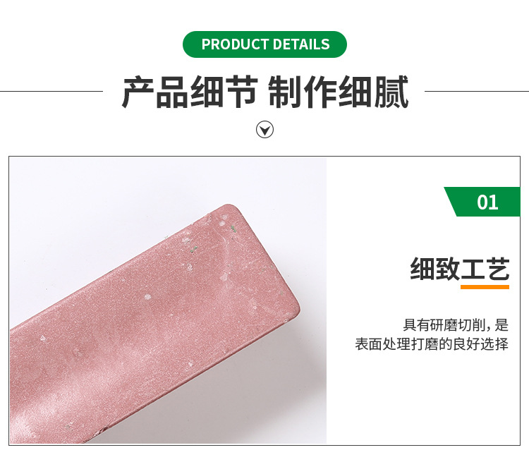 適用于一般鋼材,如不銹鋼、不銹鐵、鐵、銅、鋁等金屬進(jìn)行中至精細(xì)研磨。此產(chǎn)品對工件的磨削力與打磨后工件的光亮度兼顧得比較好。能撤底去除工件表面上的砂眼、氧化皮等,使工件表面平滑如鏡,并產(chǎn)生優(yōu)良的光澤度。現(xiàn)時(shí)各廠家在不銹鋼餐具、廚具、刀具、管材、表帶等的中至精細(xì)研磨方面大量選用此產(chǎn)品。通常配合麻輪使用。
