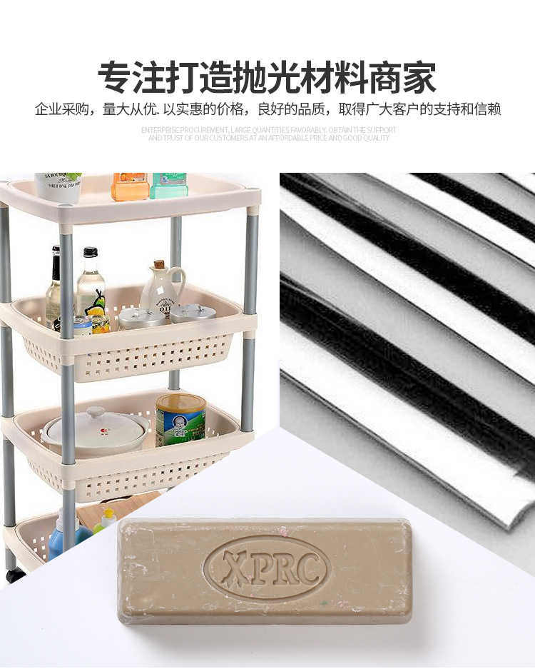 一般情況下用不同的顏色表示不同品種的拋光臘,避免使用時混亂。高含量的磨料可以加速整個拋光過程。這個過程是拋光臘拋光輪表面移動而使材料變得光滑。