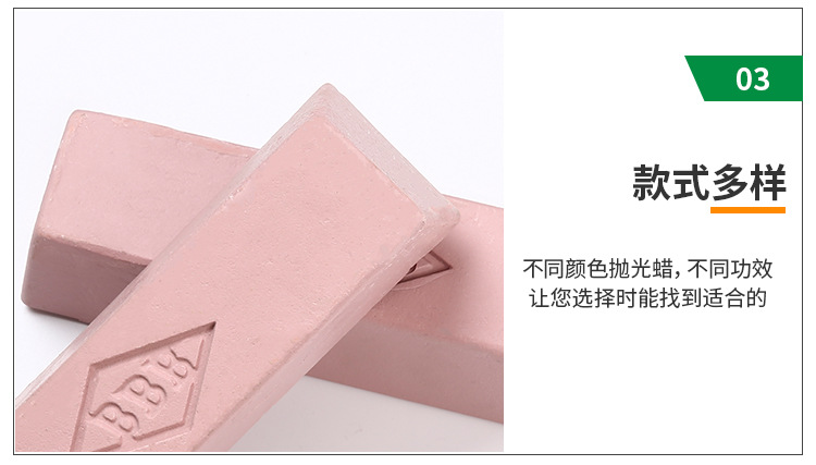 溫州華銘拋光研磨材料有限公司提供的bbb粉色拋光蠟(拋光臘)可用于金屬、不銹鋼、木雕玉石等固體打磨拋光用,可以增加金屬、不銹鋼、木雕玉石等固體光澤,保護(hù)產(chǎn)品漆膜免受潮濕、劃傷與灼傷的作用。正確地使用上拋光蠟可使產(chǎn)品更富于光澤。