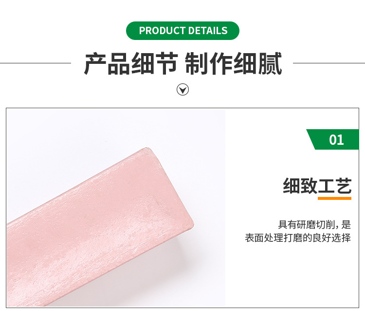 | 紫臘 V-5 | 桃紅 | 20 | 與麻輪配合使用專門針對(duì)國內(nèi)材質(zhì)較差的不銹鋼,不銹鐵,鋁等有著較好的切削率與亮度光澤 |