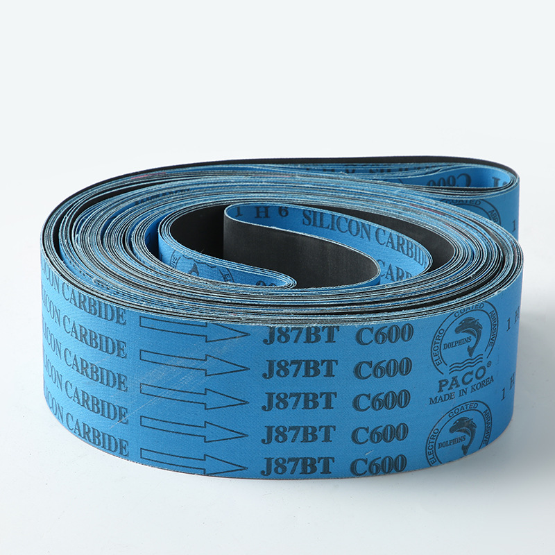 您當前的位置:首頁 / 產(chǎn)品中心 / 砂帶系列 / 藍色J87BT海豚砂帶 碳化硅磨料砂卷紙手撕砂帶砂紙打磨