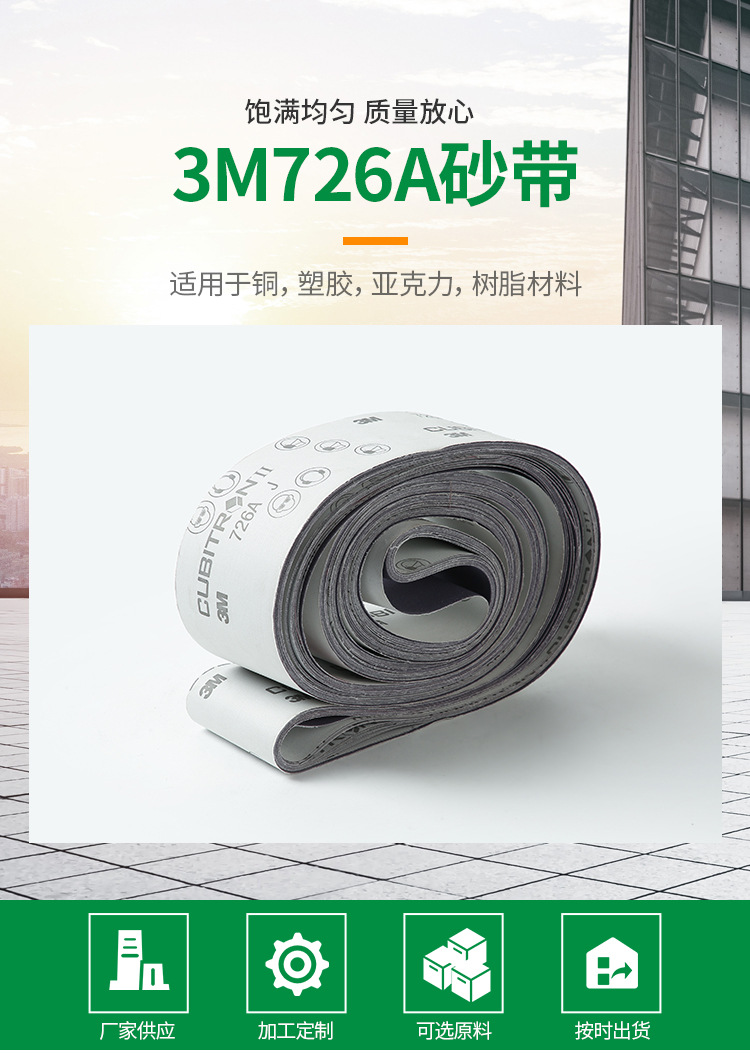 打磨拋光3M726A砂帶適用五金衛浴潔具汽車軍工砂布卷砂紙打磨